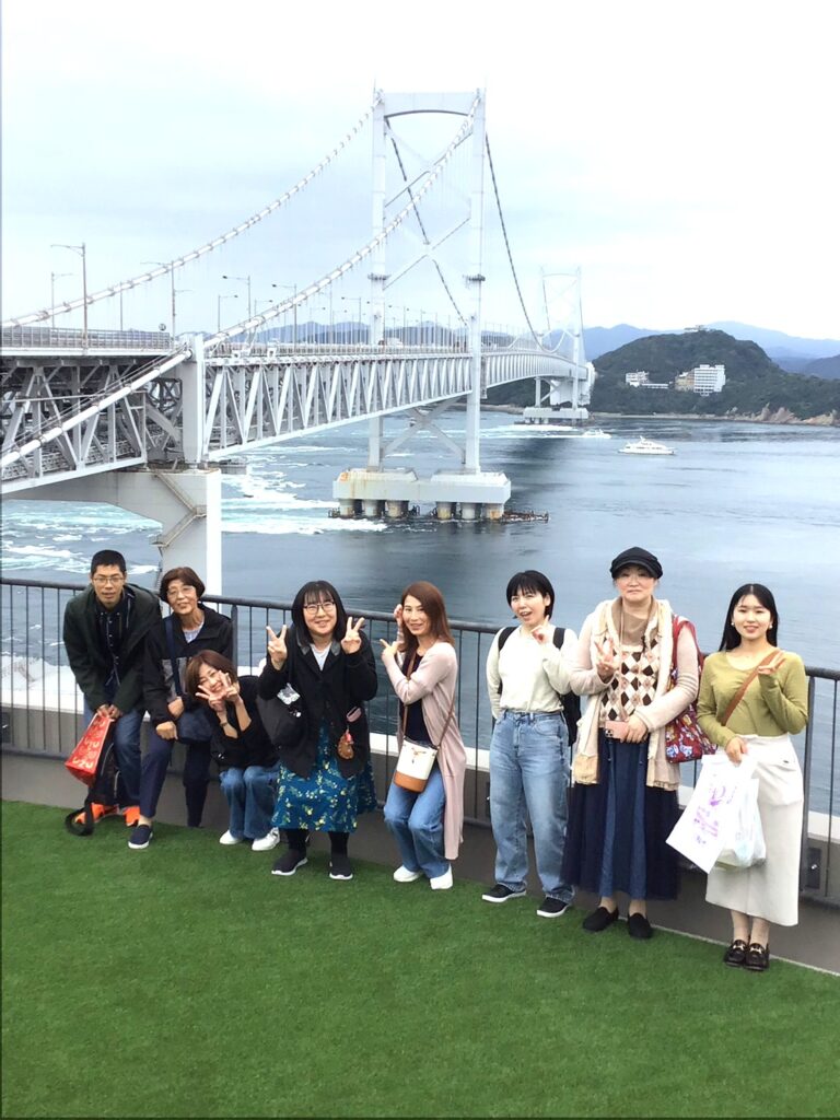 2025年10月25日(土) 兵栄会バスツアーを実施しました。栄泉会の方にもご参加いただきました。集合場所三宮では一時小降りで、観光終わって帰路についてから雨が降り出しましたが、海と大鳴門橋の眺めは良く、お腹いっぱい、お土産いっぱいのツアーとなりました。