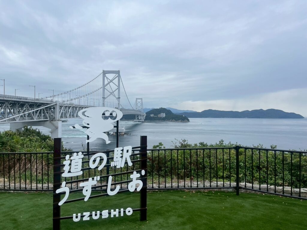 1週間前にリニューアルオープンした「道の駅 うずしお」へ大鳴門橋を淡路島側から眺め、朝よりは渦もまき、景観の良い展望台でした。