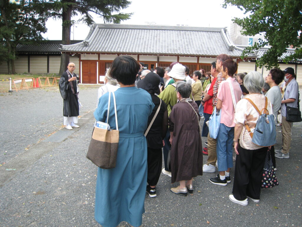 御影堂~阿弥陀堂を見学、「埋め木」や「鐘撞」の説明、宗祖・親鸞聖人のご尊顔等ご案内していただきました。
