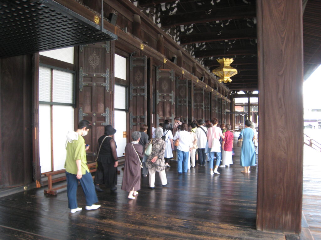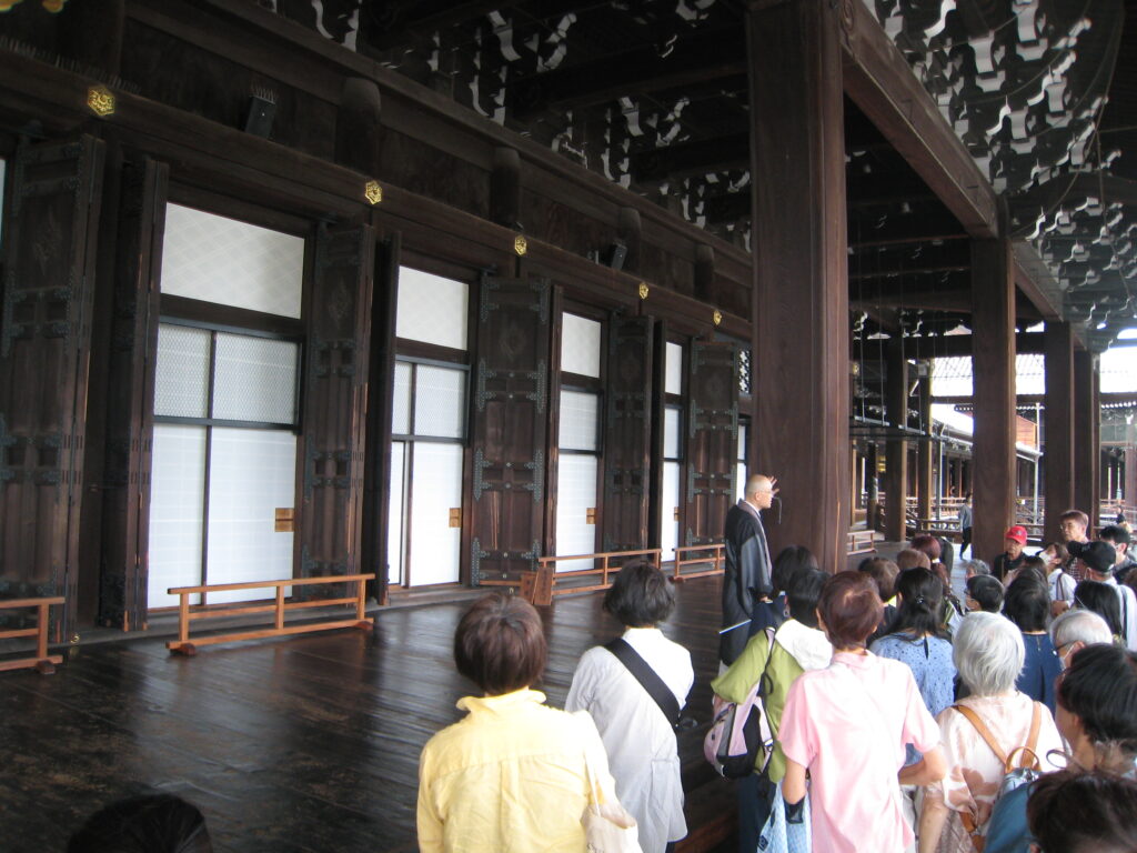 昼食後、西本願寺を訪れました。国宝・世界文化遺産認定だけあって、その広大さに圧倒されました。