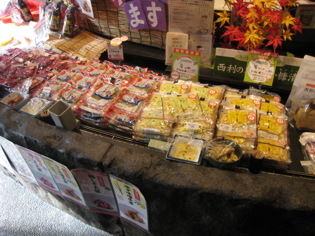 最後に「京つけもの西利本店」でお買い物。数あるお漬物に目移りしながらお土産を買い求めました。