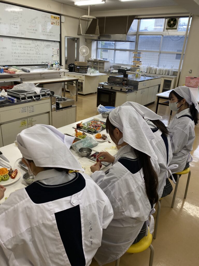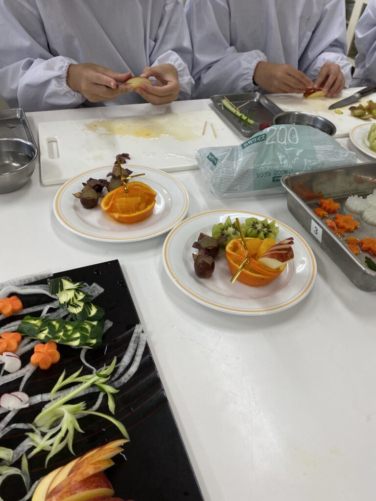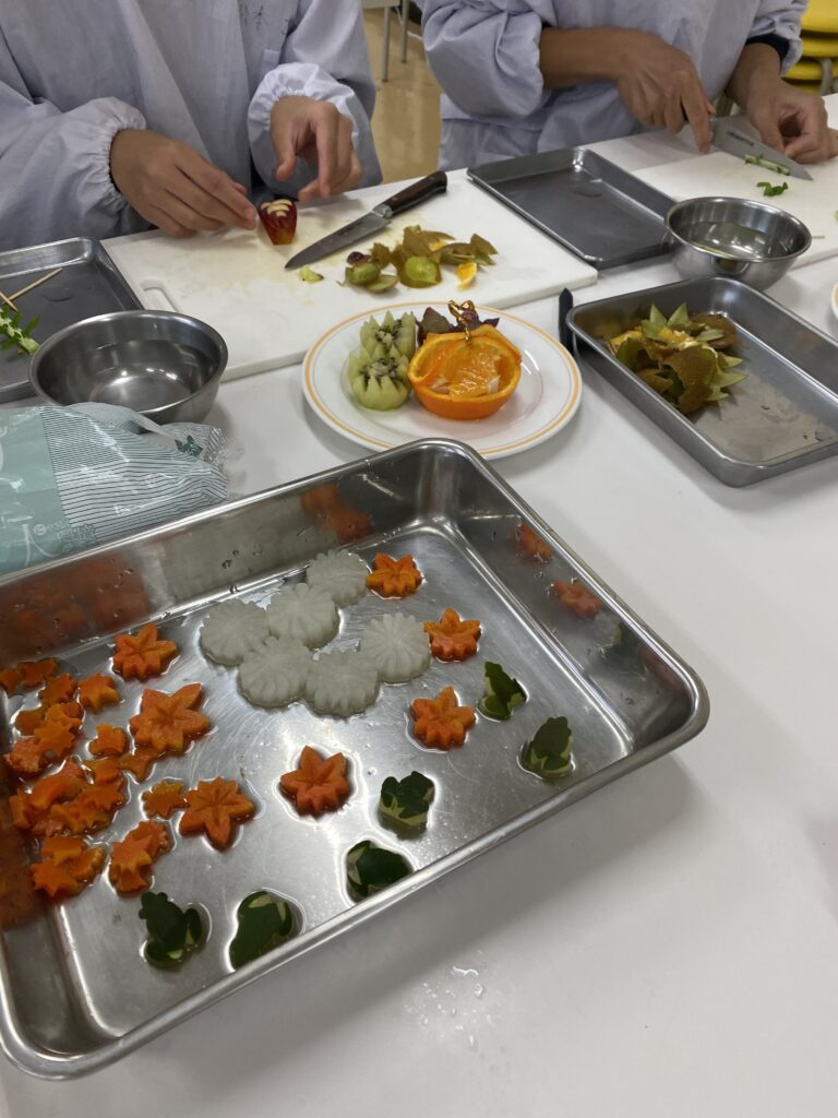30日は2年生、飾り切りの実演、体験実習です。