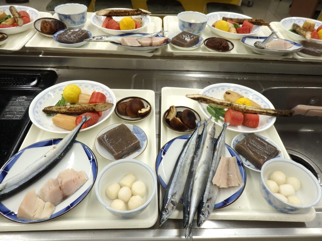 幽庵焼きは、さんまとさわらを用意しました。煮しめは定番の野菜に人参は金時人参を使いました。