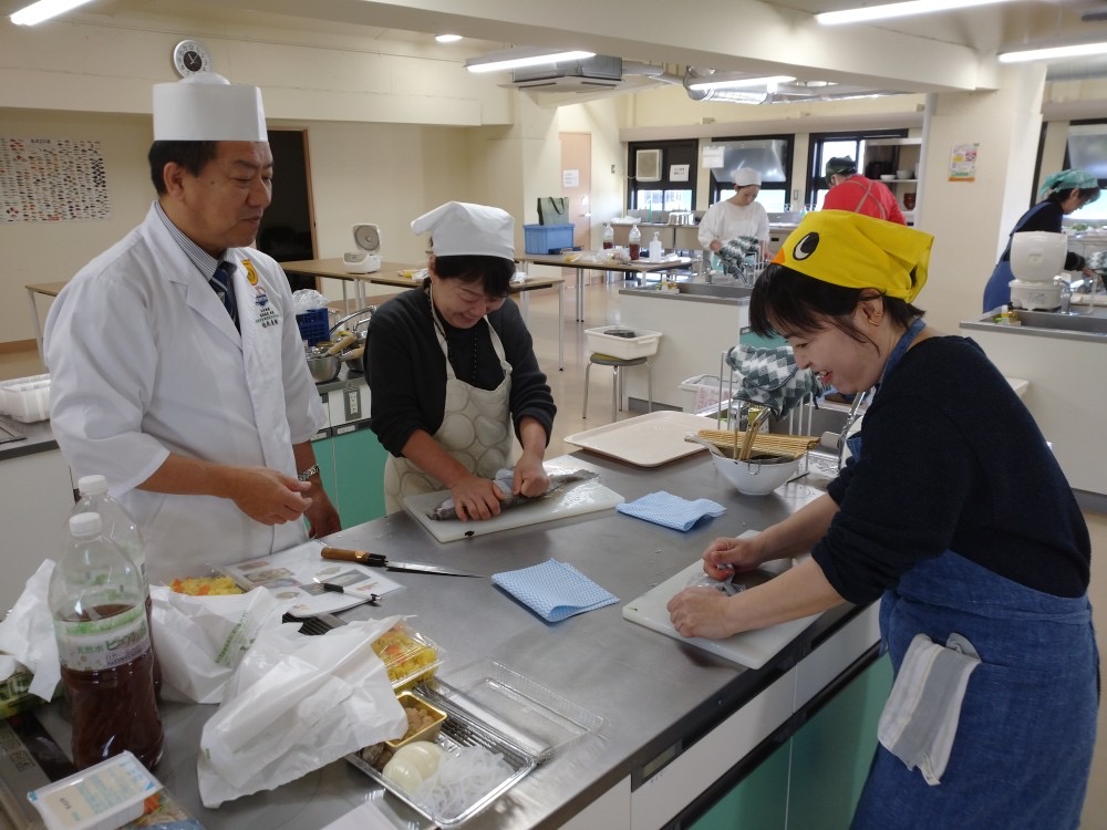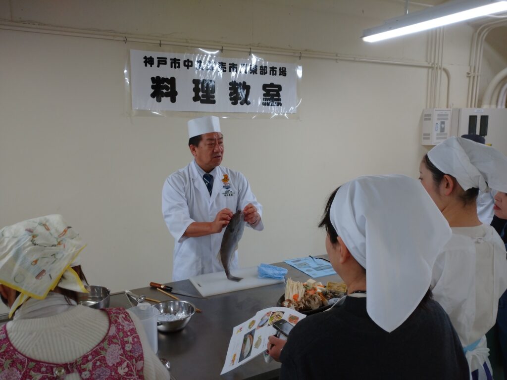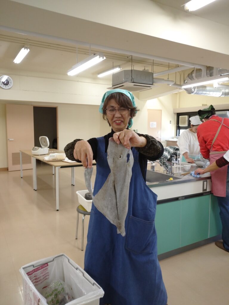 12月18日木曜、神戸市東部中央卸売市場のとうぶキッチンで開催のマイレッスンは魚クッキング。今月は大きなうちわはぎを卸します。