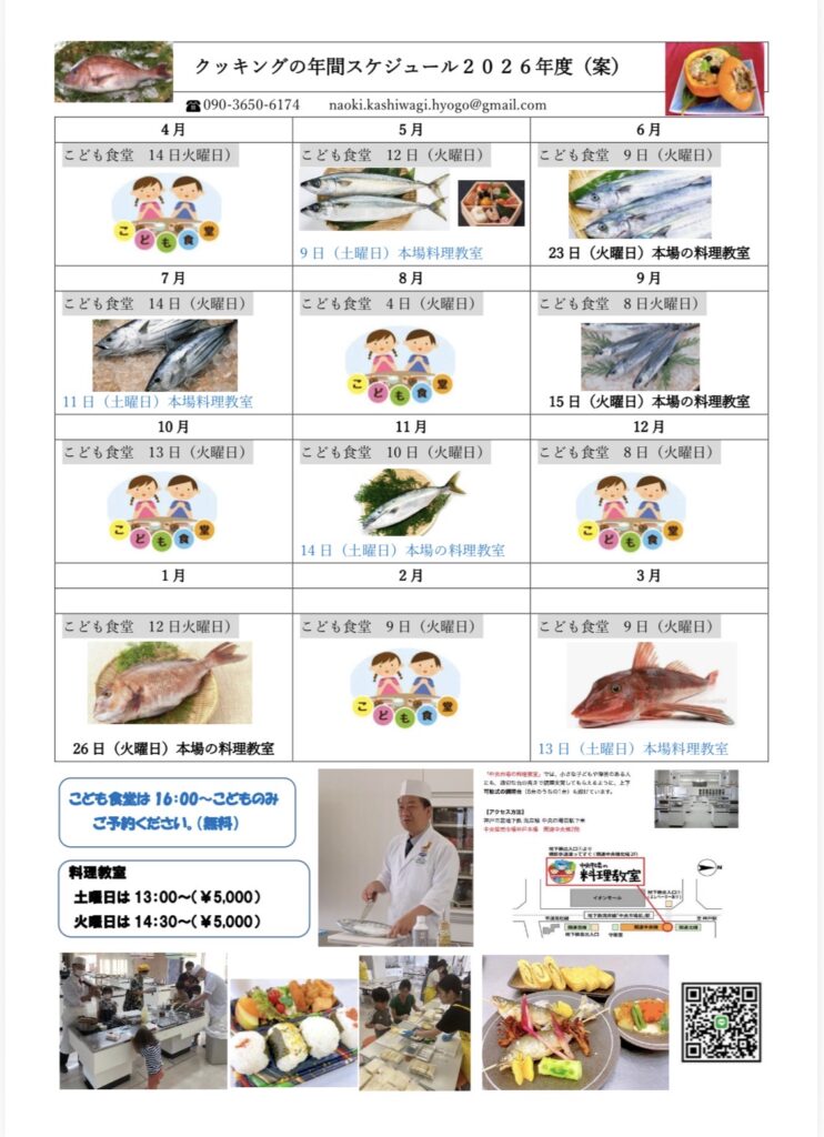 3月14日土曜日、神戸市中央卸売市場本場の料理教室で、和食クッキングの開催です。